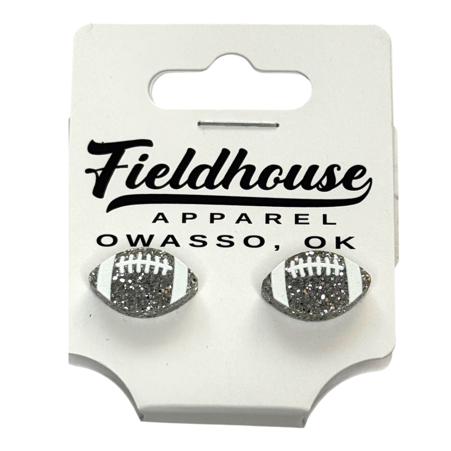 Football Glitter Stud Earrings – Silver