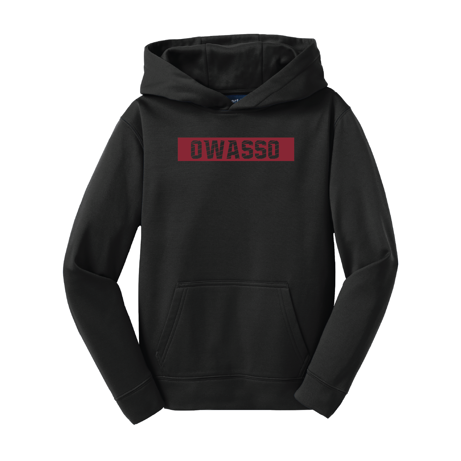 Owasso Rams - Screen Print Owasso Box Angle-Youth Sport-Wick Fleece Hoodie (BLK)
