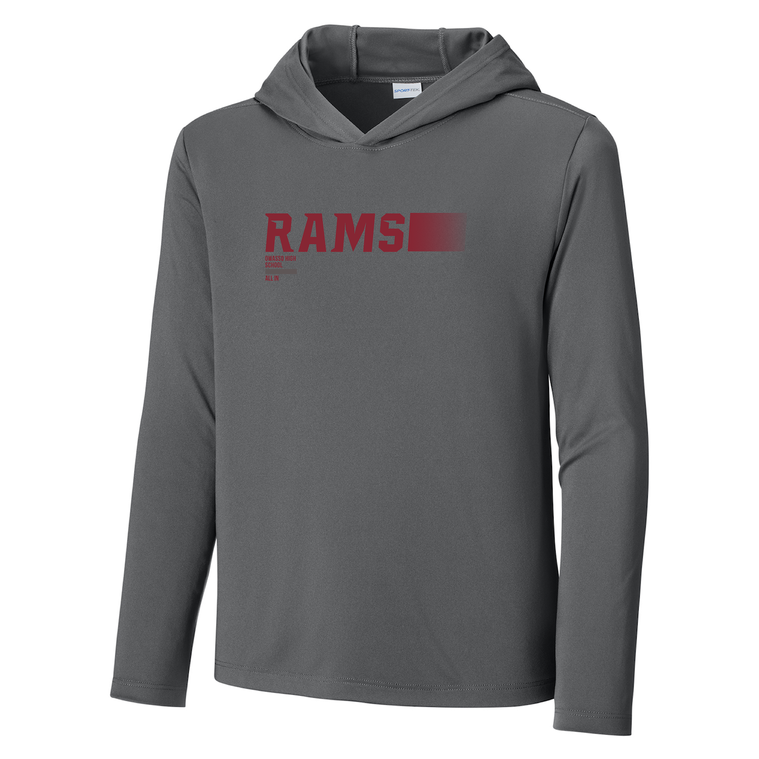 Owasso Rams - Screen Print Rams All In - Youth UV HoodedPerformance Long Sleeve Tee