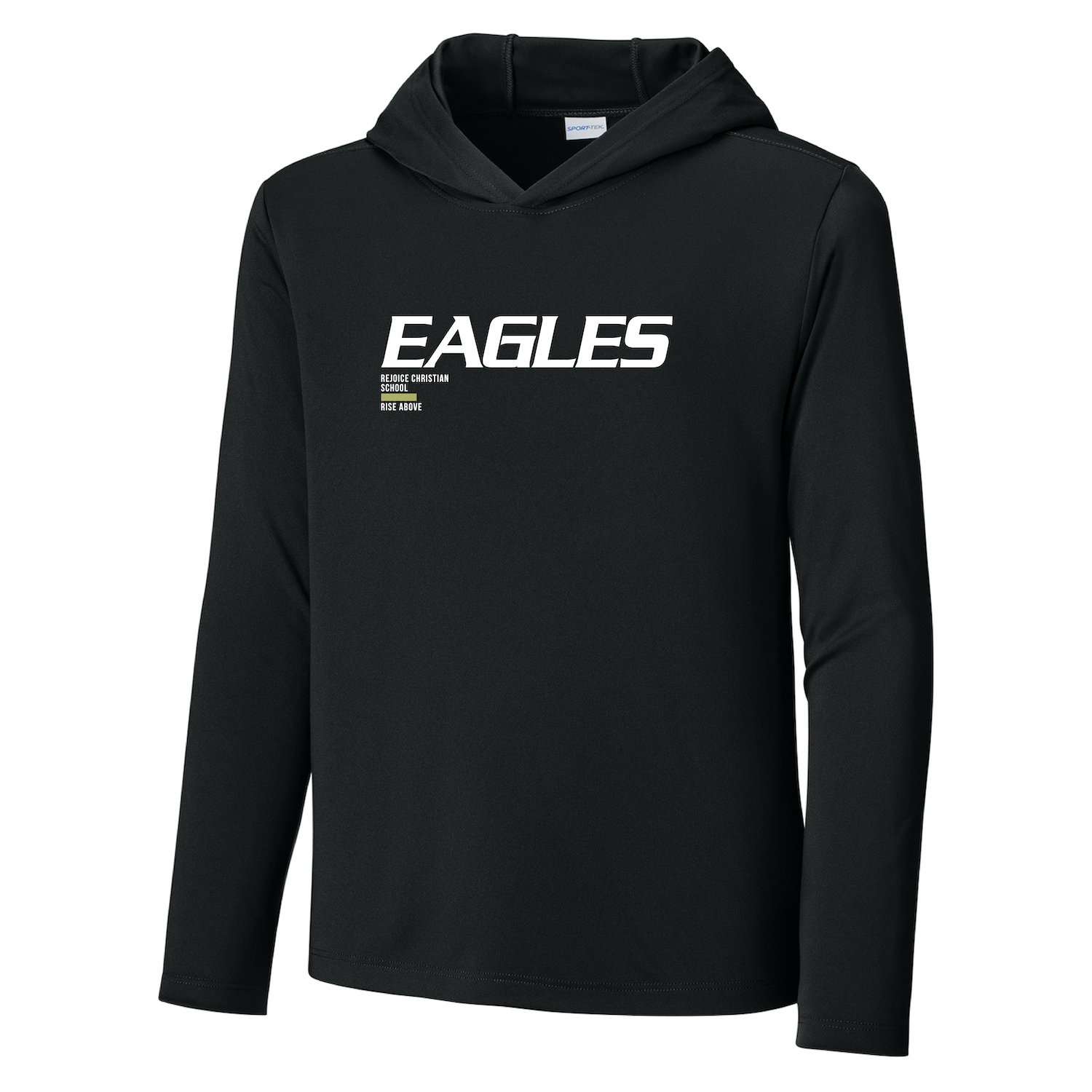 Rejoice Eagles - Screen Print Eagles Rise Above - Youth Hooded UV Performance Long Sleeve